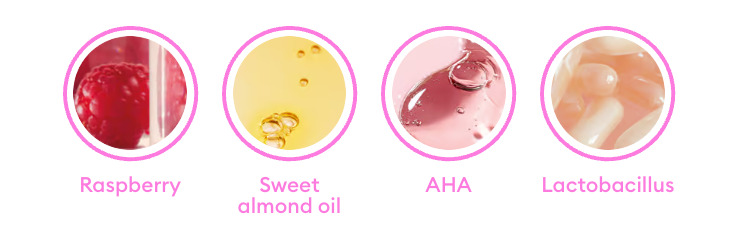 ETHYL ACETATE, BUTYL ACETATE, NITROCELLULOSE, ADIPIC ACID/NEOPENTYL GLYCOL/TRIMELLITIC ANHYDRIDE COPOLYMER, ACETYL TRIBUTYL CITRATE, ALCOHOL, GLYCOLIC ACID, CAPRYLIC/CAPRIC TRIGLYCERIDE, ETOCRYLENE, PRUNUS AMYGDALUS DULCIS (SWEET ALMOND) OIL, CI 15850 (RED 6 LAKE), ISOPROPYL ALCOHOL, LACTOBACILLUS FERMENT, RUBUS IDAEUS (RASPBERRY) LEAF EXTRACT, TOCOPHEROL