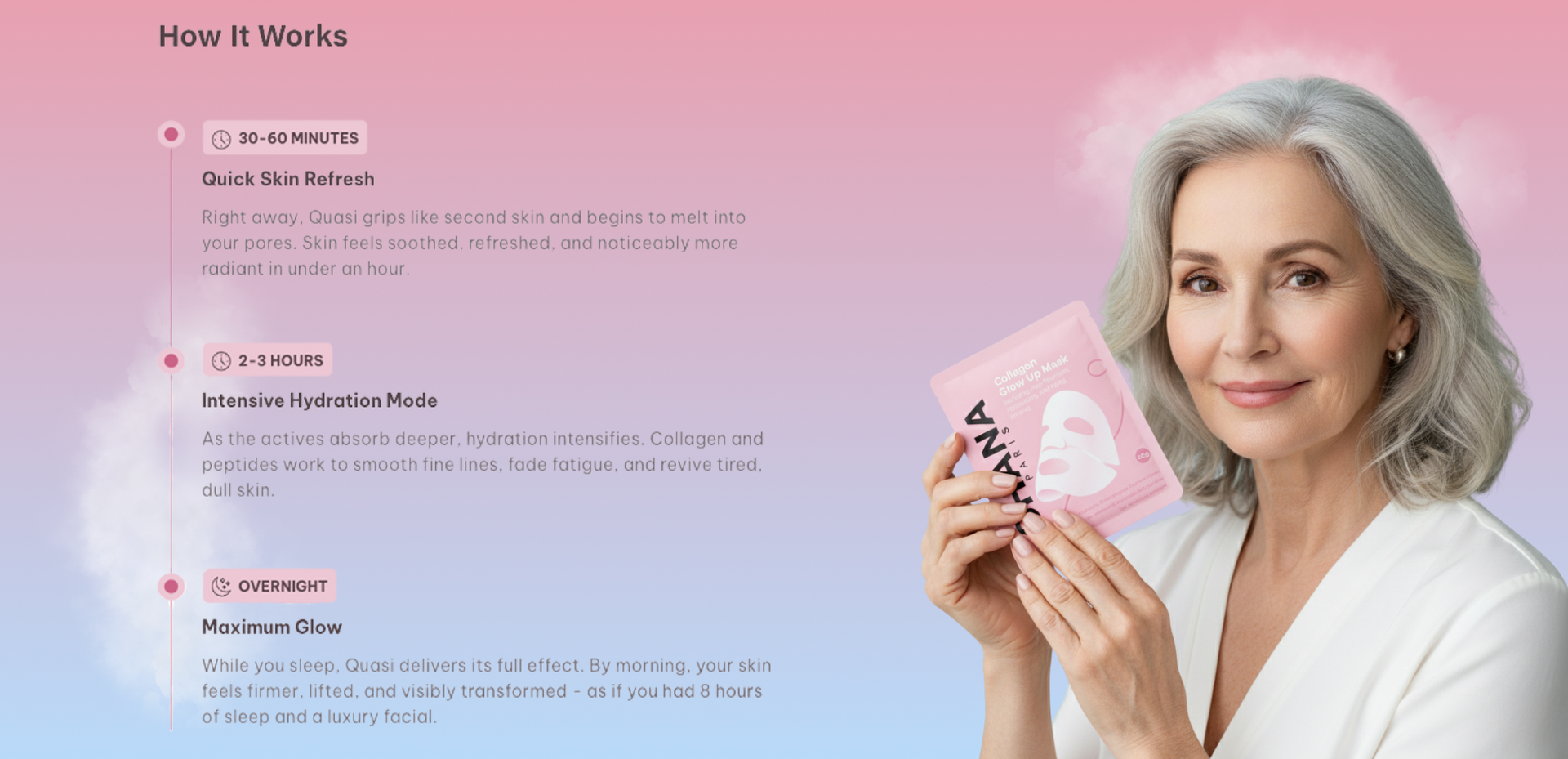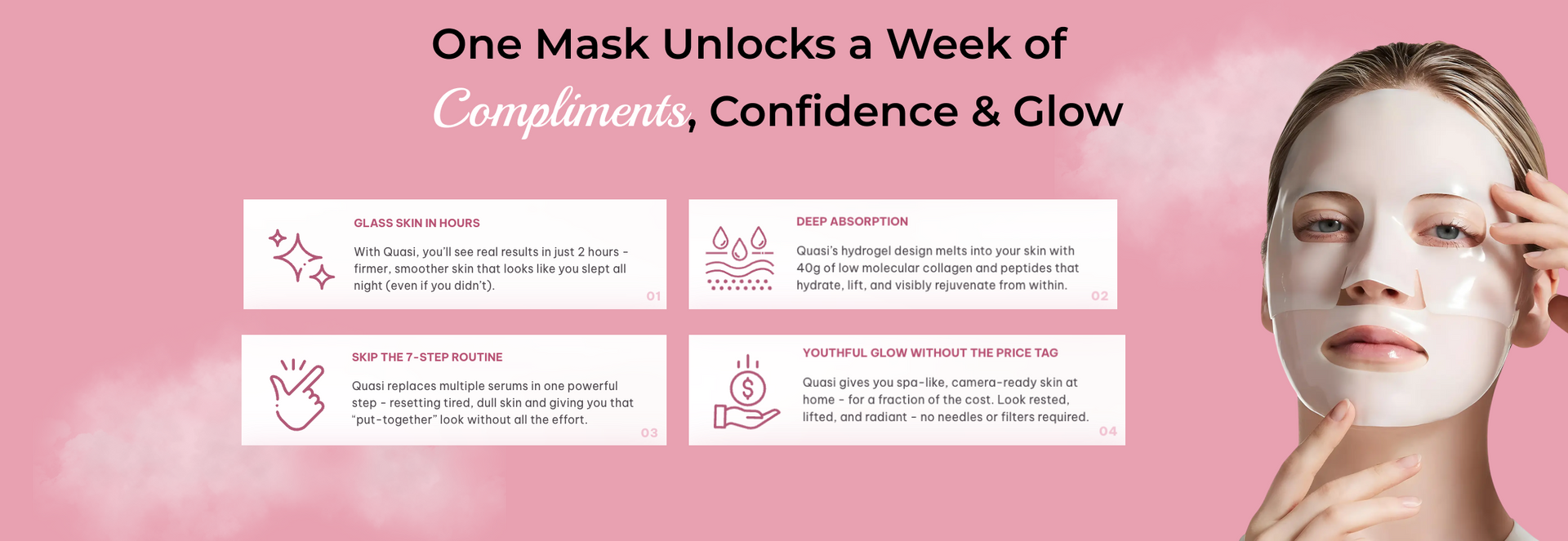I’m 60 and I wish that I had taken more care of my skin when I was younger, maybe even at my 40s. The Quasi Bio Collagen Mask has given my skin that extra ‘oomph’ it needed. I noticed my skin looking smoother and more lifted after just a few uses. Now, I feel great going makeup-free, and I’m getting so many compliments! It’s like my secret weapon for looking and feeling young.